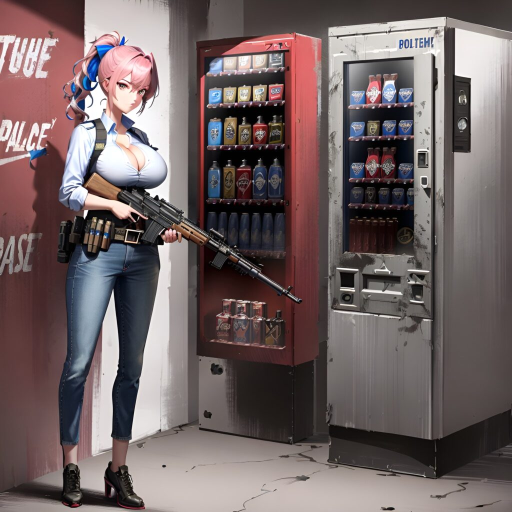 /render /seed:193576 /images:6 /guidance:16 /sampler:k_euler_a /size:832x1024 <gun-shotgun:0.8> ((masterpiece, good quality)), anty-loli police, holding a military grade shotgun, pink hair, short ponytail, huge breasts, open up motherfucker, angry face, military uniform, 1girl, trigger discipline, tactical jacket, helmet, knee-protectors, musty old apartment, mold on walls, tension, drama, chiaroscuro, complementary colours, jeans short, intricate details, absurdres, high quality, [lowres, blurry, worst quality, low quality, good anatomy, extra limbs, extra digits, realistic, 3d] <aom3>