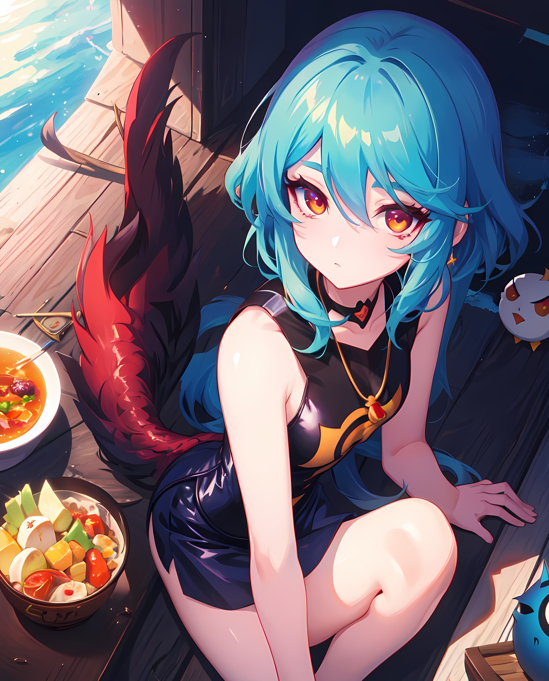 /render /seed:406210 /guidance:7.313876491149337 /sampler:k_euler_a /size:832x832 fantz creatures, lamia design, portrait, cute lamia, 1girl, solo, charming, swamp, living room, mansion, gothic-lolita, casual clothes, snake tail, masterpiece, good quality, scales, ((intricate details, cute face, blue eyes, ponytail, small bosom, absurdres, deep shadows, color gradient)), by ((koun)), [[lowres, blurry, worst quality, low quality, greyscale]] <creatures:0.5> <cetus>