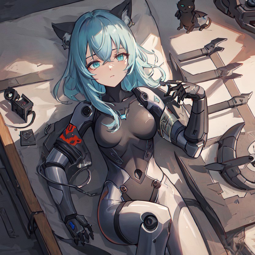 /render /seed:544422 /guidance:8.593943213870535 /sampler:k_euler_a /size:832x832 <cetus> <oversized-shirt:0.5>, dieselpunkai, sleepy, cat-girl, military robotic body parts , demonic, masterpiece, good quality, cute, masterpiece, good quality, deep shadows, [lowres, blurry, worst quality]